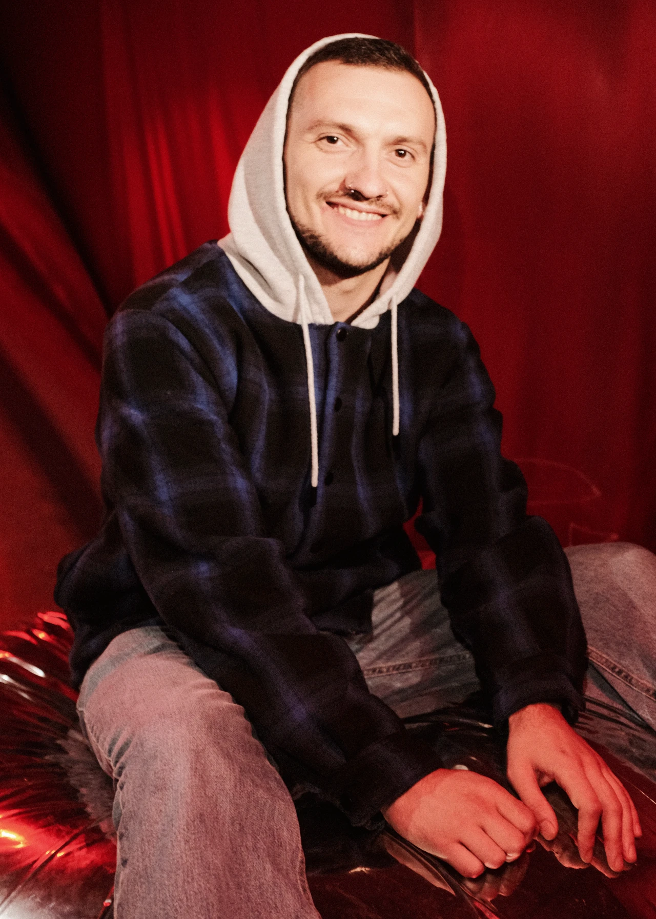 Relocating to Poland in 2022 reignited his artistic path: debuting at Ciało with Odwi33rt in December 2023, and soon after releasing his first track Shutdown. His guiding motto ever since: “The only way is up.”